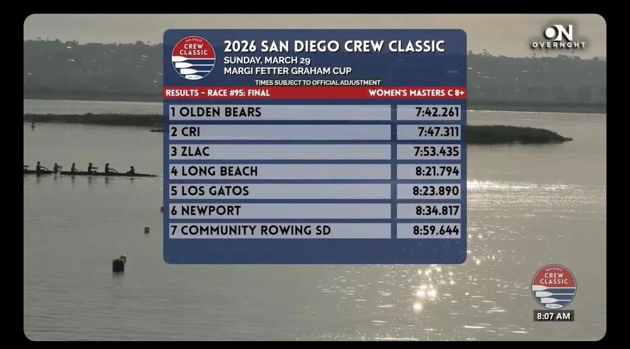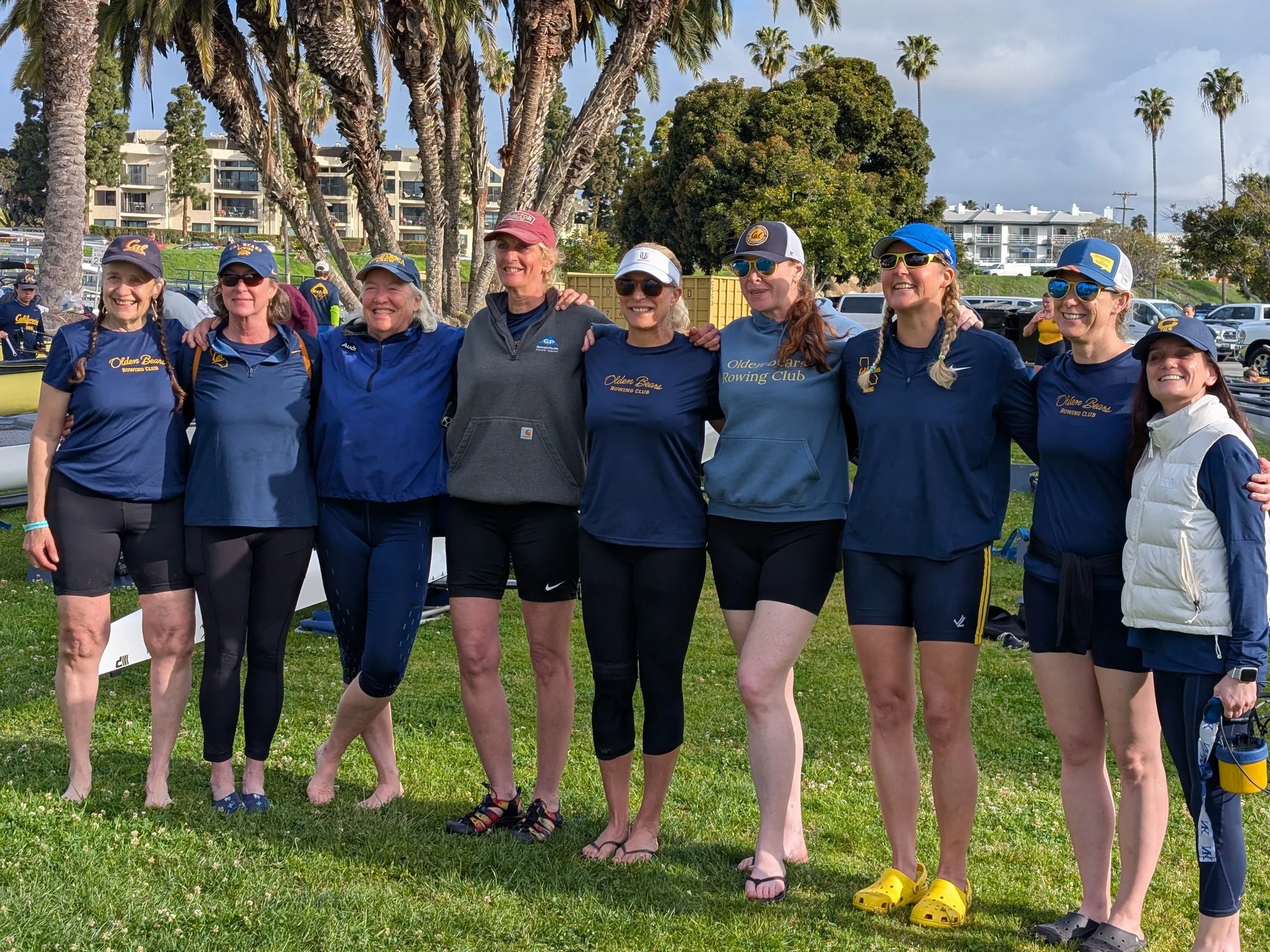 What a weekend for the Olden Bears last month! We descended on San Diego with a formidable fleet of boats, making our presence felt across the board. A huge thanks to the Cal mens and womens programs for the equipment. We raised sizable donations for Cal Crew, but beyond the support for our young athletes, one other highlight was the stellar performance of our Women’s Masters C boat, who took home a huge trophy in their category.